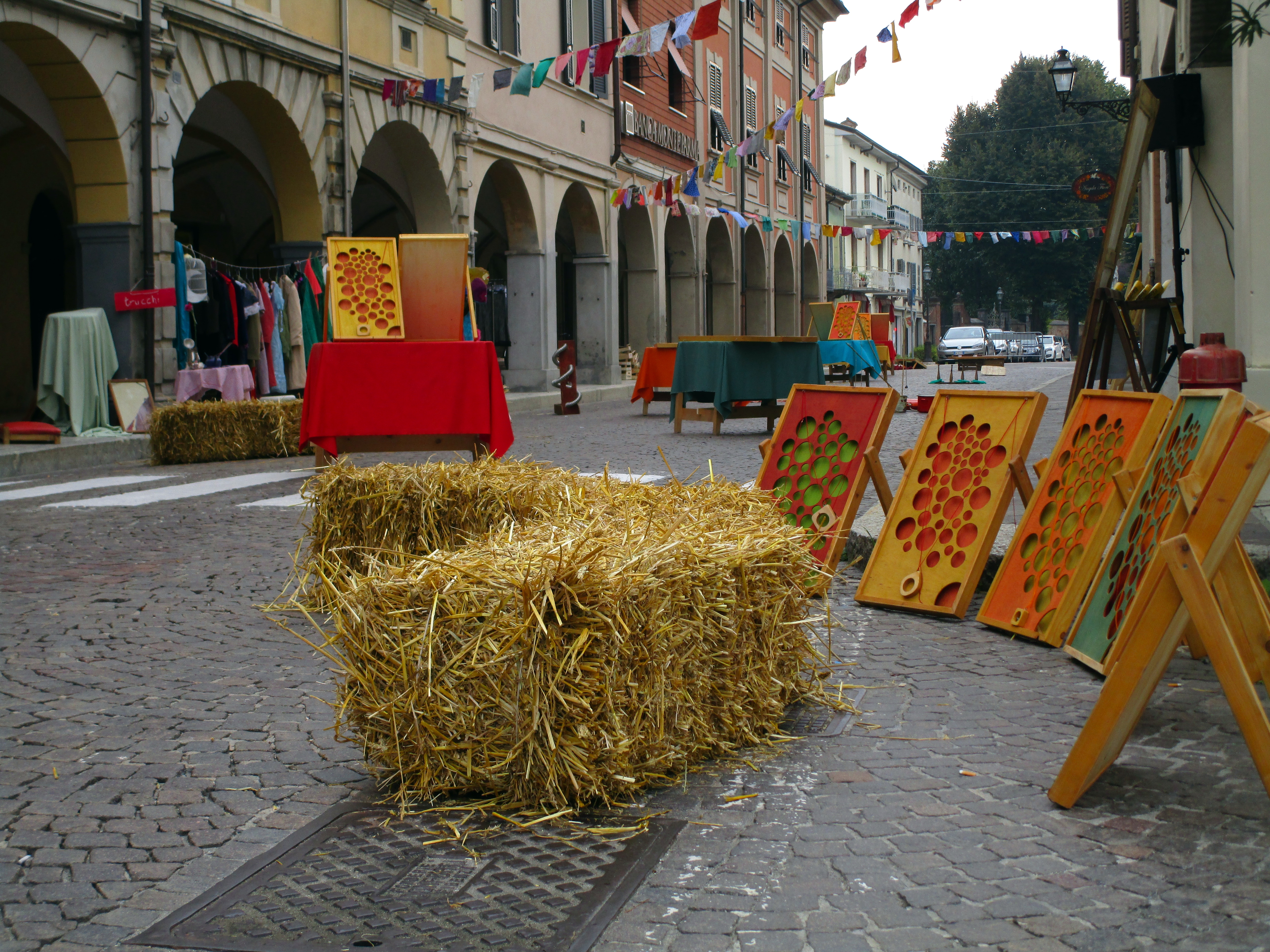 Una compagnia artistica che con coinvolgenti giochi fatti in legno e tanti materiali di recupero allestisce le piazze di città e paesi in festa.